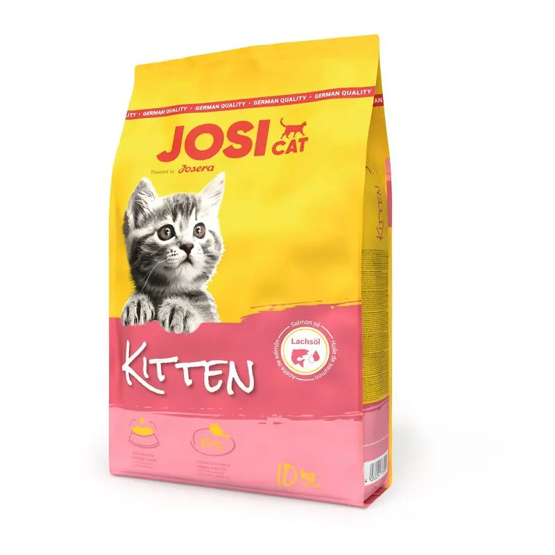 غذای خشک بچه گربه جوسرا مدل JosiCat با طعم ماهی، از ترکیب غلات، فراورده های جانبی گوشت ماهی، مشتقات گیاهی، مشتقات ماهی، ماهی و مواد معدنی، روغن ها، ویتامین A، ویتامین خانواده B، ویتامین E، نیاسین، بیوتین و تائورین تهیه شده است.