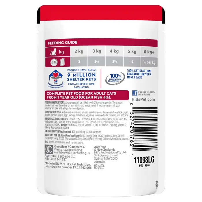 پوچ گربه بالغ هیلز با طعم ماهی اقیانوسی (85 گرم) غذایی کامل و خوشمزه است که با طعم طبیعی ماهیهای اقیانوسی تهیه شده و نیازهای تغذیهای گربههای بالغ را بهخوبی تامین میکند. این محصول سرشار از پروتئین با کیفیت بالا و اسیدهای چرب امگا ۳ است که به حفظ سلامت پوست، مو و عملکرد بهینه سیستم ایمنی کمک میکند.