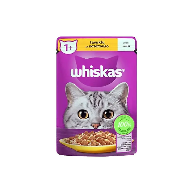 پوچ گربه ویسکاس با طعم مرغ در ژله وزن 85 گرم
